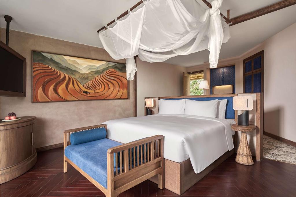 Hệ thống villa riêng tư: các biệt thự view núi rừng hoặc ruộng bậc thang, hồ bơi vô cực và ban công rộng.